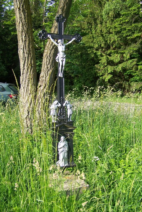 An dieser Stelle, an der Grenze der Katastergebiete Kunvald und Bartošovice v Orlických horách, noch bevor die Straße in die Wälder oberhalb der Gemeinde Zaječiny mündet, versteckten sich rund um 1550 die Mitglieder der Sekte der Adamiten.