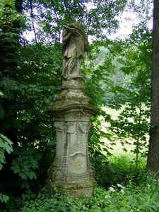 Kousek od hraničního kříže, naproti již zmíněného mlýna, stojí stará socha barokního světce Jana Nepomuckého. Sochu tohoto českého svatého nechal zhotovit roku 1798 Fr.Bílek z dolního Kunvaldu u sochaře Ciliáka. Charakteristických pět hvězd svatozáře sv.Jana Nepomuckého už dnes vidět nemůžeme, neboť je i s hlavou urazila v r.1920 ruka vandalova. Hlava se později ztratila a socha dodnes stojí bez ní.